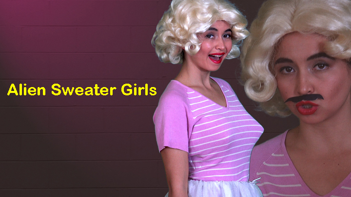 Mernivax, 20's. Her ancestors bred with ancient aliens. She has huge pointed breasts. (remember this is a farce! We'll rig up some huge funny boobs!) She wears a tight sweater. She may have a wild hair style or wig. She may have strange eye makeup. She encounters Marcie on the street and they chat a bit. If the scene is going well it could be longer, with more pay for Mernivax.