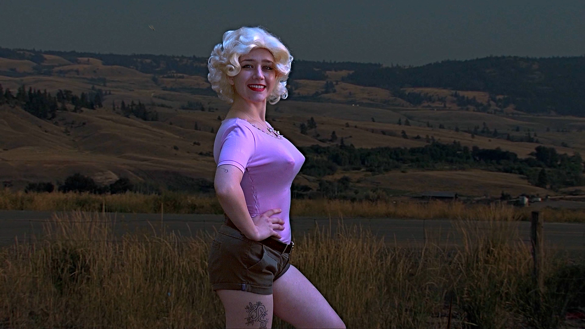 Amy. Pay $1000 for about 2 days. 18 to about 24. She is an aspiring actress. She loves old movie fashion, and Hollywood icons like Marilyn Monroe. She often dresses like her, wearing a bullet bra and tight sweaters and a Marilyn style wig. (Search net for bullet bra and sweater girl photos) She wants to play serious dramatic roles. She has had lead roles in two short films which never got finished. She has auditioned and had call backs for big movies, but never got picked. She has a day job as an assistant in a beauty salon, where she tells everyone she is an actress. She is taking acting classes. She once had a lesbian relationship.